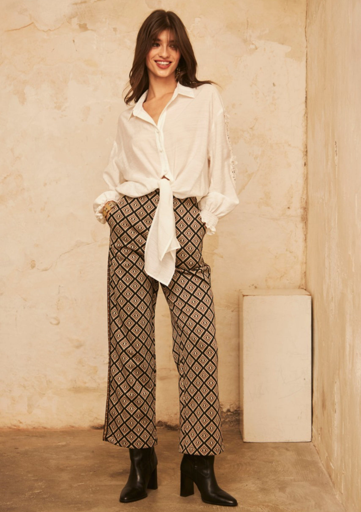 As nossas calças, saias e macacões têm estampados incríveis, floral, étnico, paisley,...