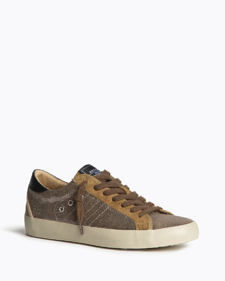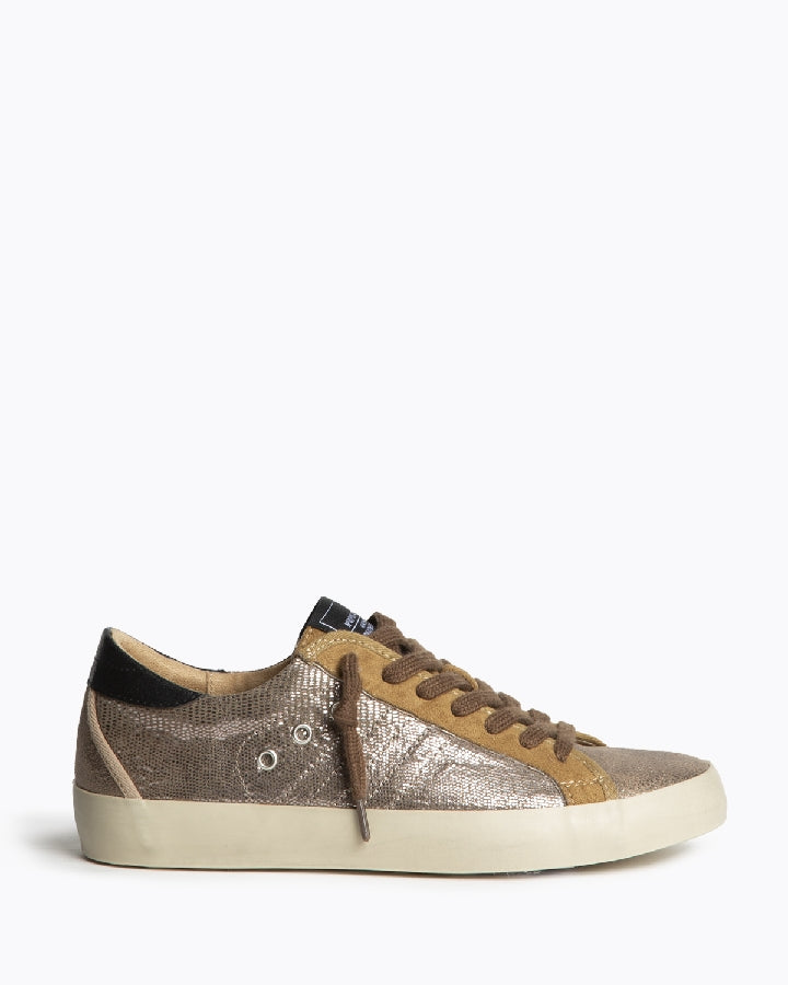 Sapatilhas bronze brilhante e camel