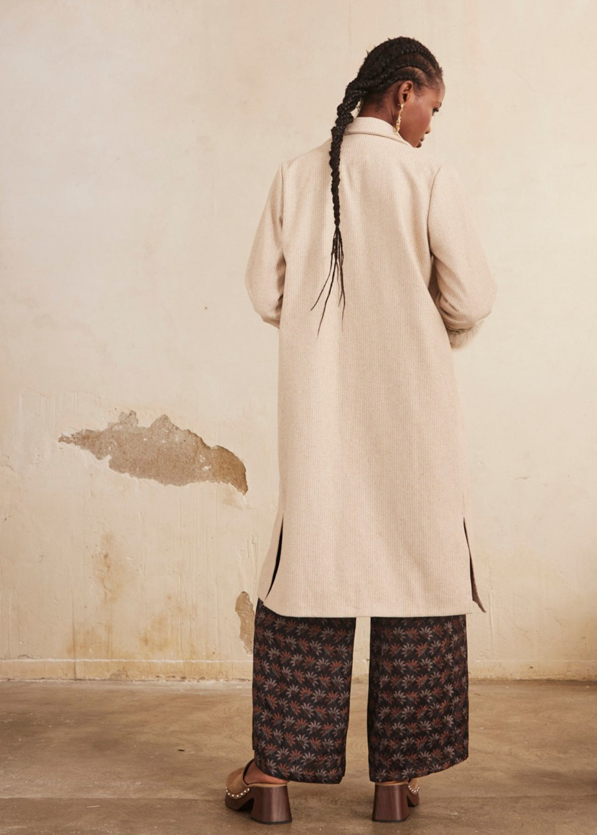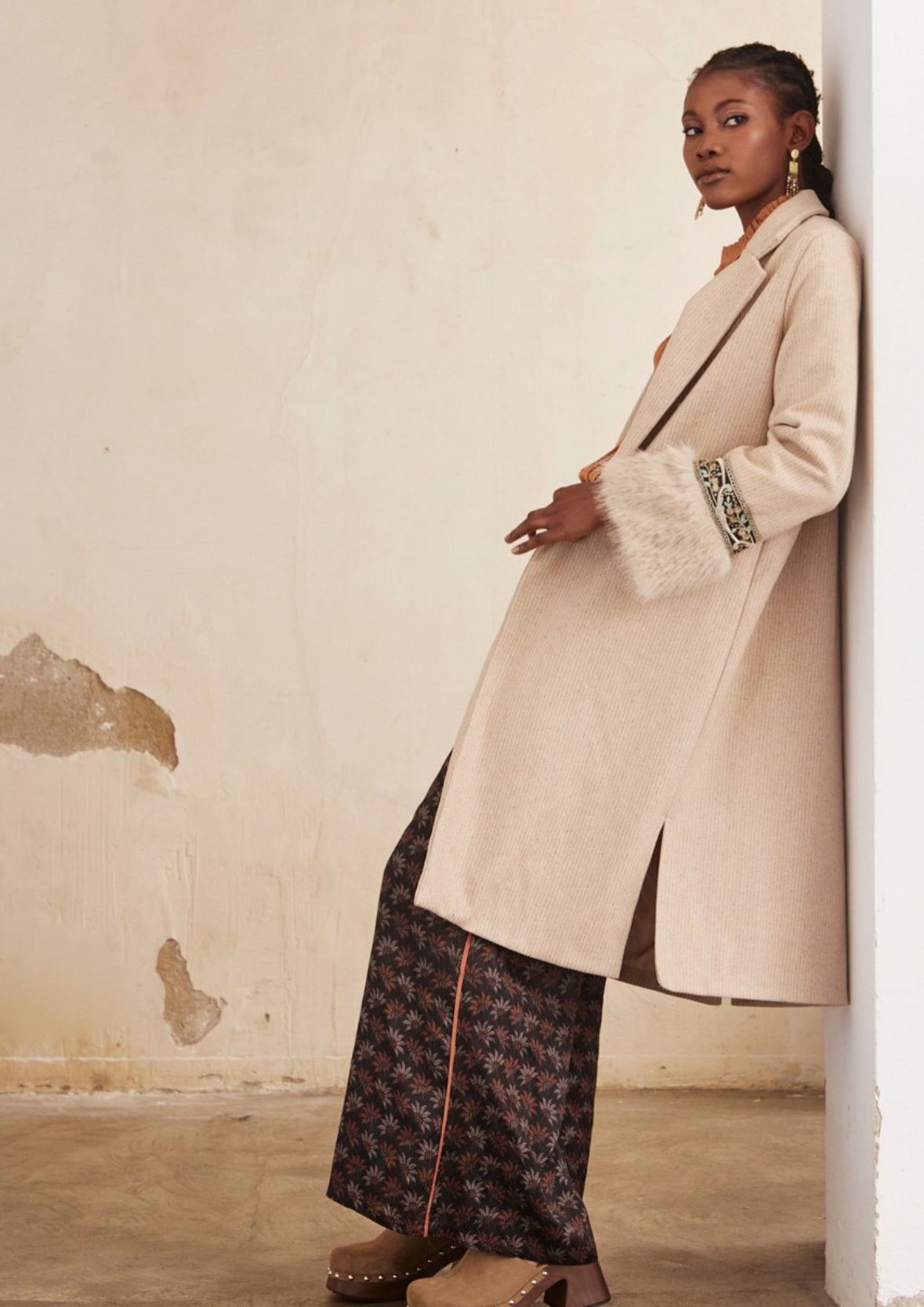 Sobretudo bege lurex punho bordado e pelo NI.Colette